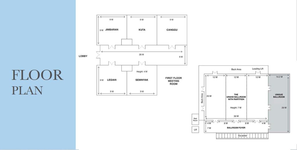 The ballroom, situated on the mezzanine floor, spans 929 square meters with a ceiling height of 6 meters. It offers the flexibility to be divided into four smaller rooms to cater to various needs. Ideal for plenary sessions, exhibitions, and meetings, this versatile space features a spacious pre-function area spanning 311 square meters. With a capacity to accommodate up to 1000 guests, it also boasts a large elevator capable of accommodating vehicles.